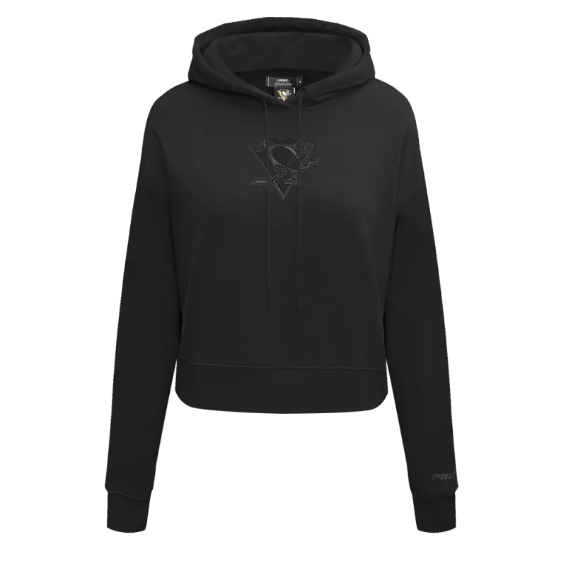 NHL PITTSBURGH PENGUINS NEUTRAL WOMEN’S CROPPED PULLOVER HOODIE (BLACK)
