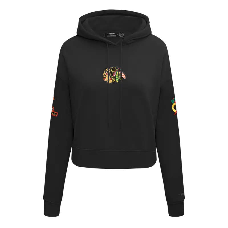 NHL CHICAGO BLACKHAWKS CLASSIC WOMEN’S FLC CROPPED PO HOODIE (BLACK)